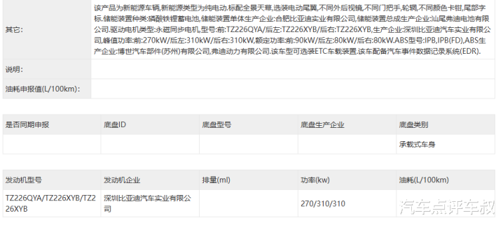 但这台车最大的看点不在尺寸,在动力。申报信息显示,Z9S提供单电机和三电机两种动力。单电机版功率370kW,三电机版总功率890kW,马力超过1200匹,最高车速270km/h,在纯电轿车里也属于顶尖水平。电池方面,全系预计搭载比亚迪第二代刀片电池和闪充技术。
