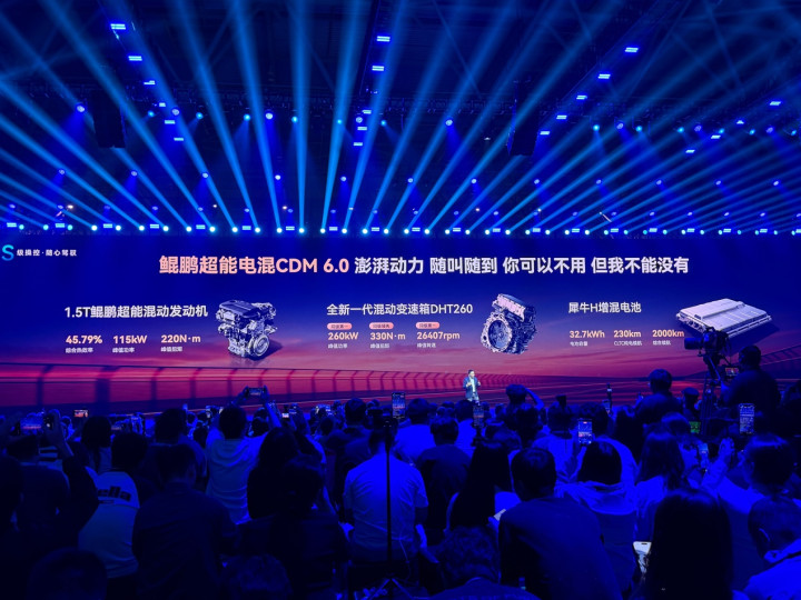 动力上,风云T9L搭载了鲲鹏AI超能电混CDM6.0系统,搭载 1.5T混动专用发动机(热效率 45.79%)+260kW 电机的动力组合,系统综合功率375kW,综合扭矩550N·m,顶配四驱版车型,将多一台最大扭矩310N·m的后电机,系统综合功率550kW,综合扭矩860N·m。动力方面,全系配备犀牛H增混电池,将提供19.5和32.6kWh两款电池包,对应的CLTC纯电续航里程为135km、230km、200km(四驱车型)。